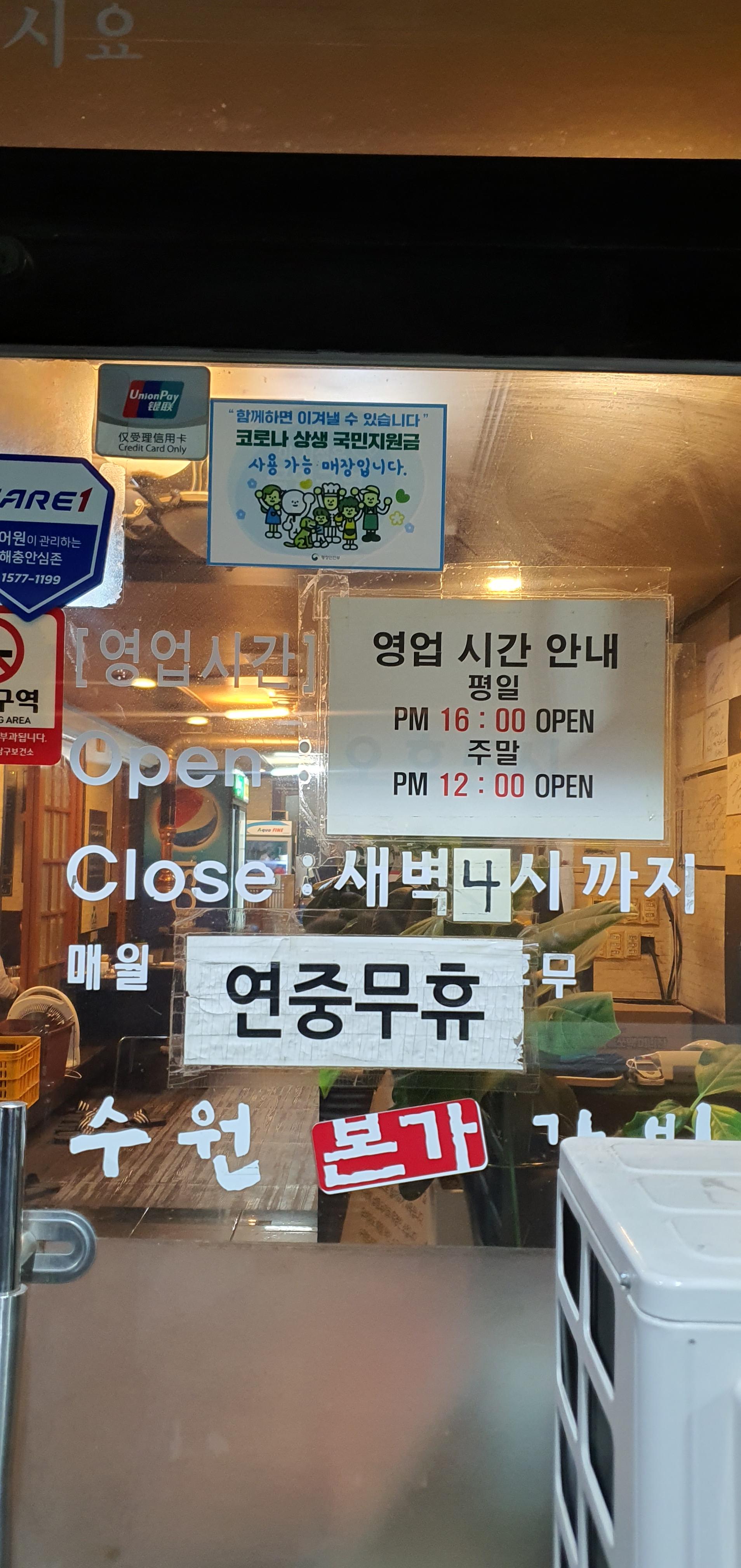 영업시간 : 16:00~04:00(월~토), 12:00~24:00(일)