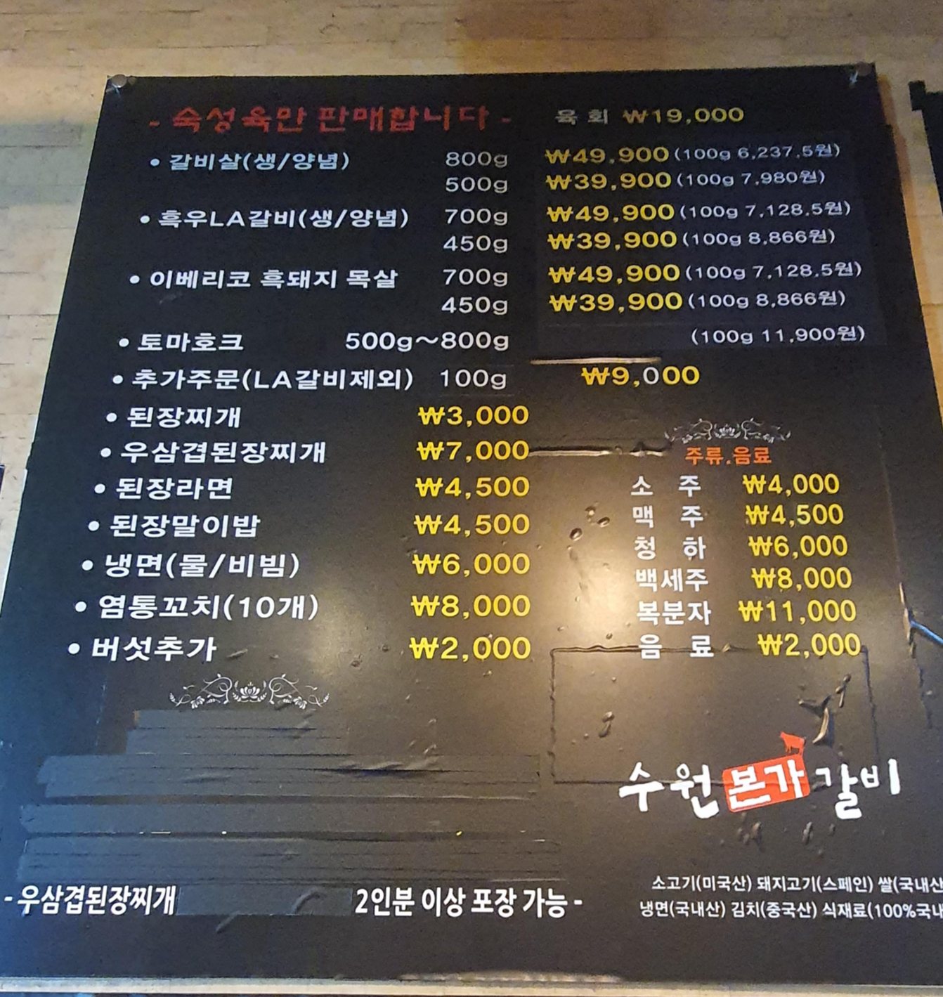 ● 수원본가갈비 내부 및 메뉴