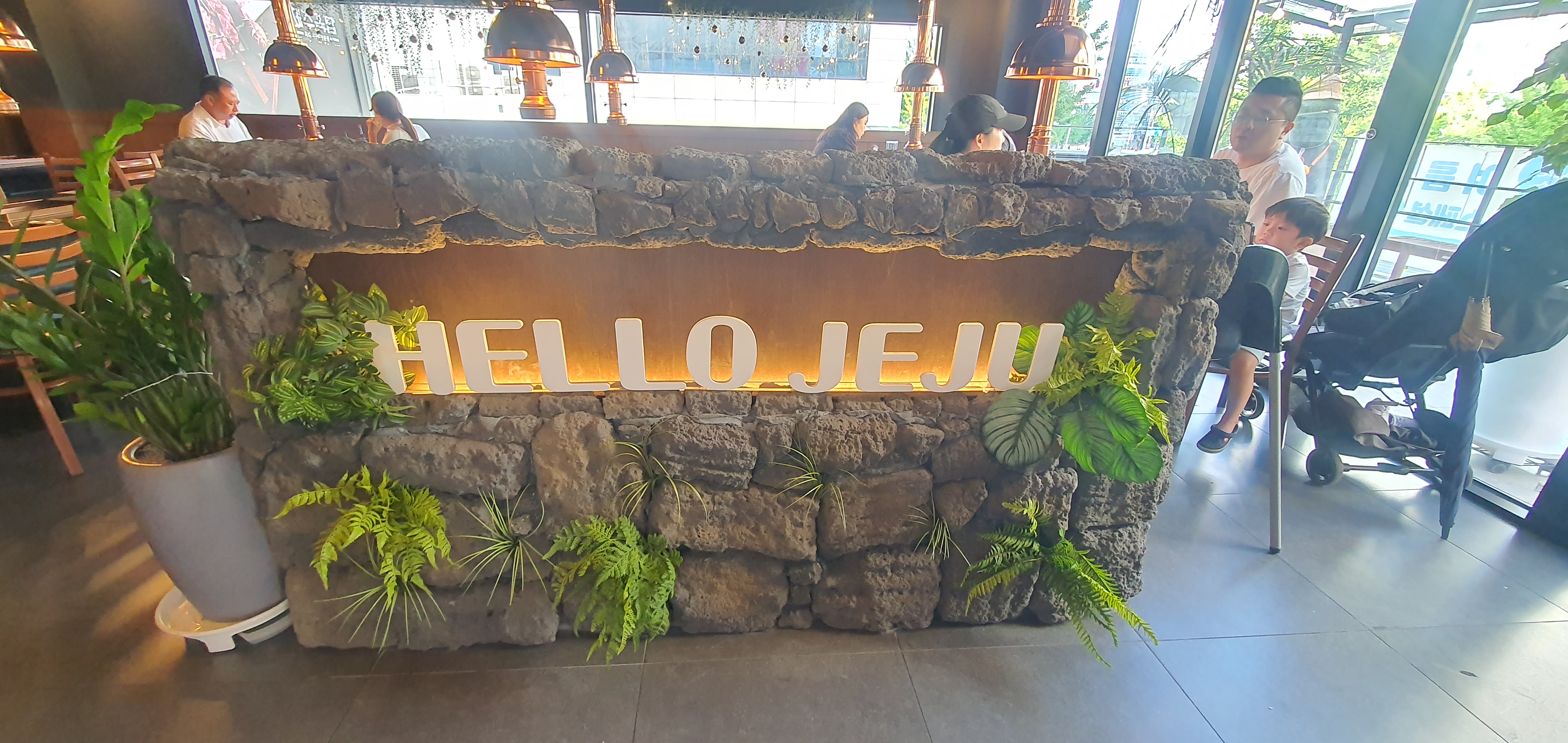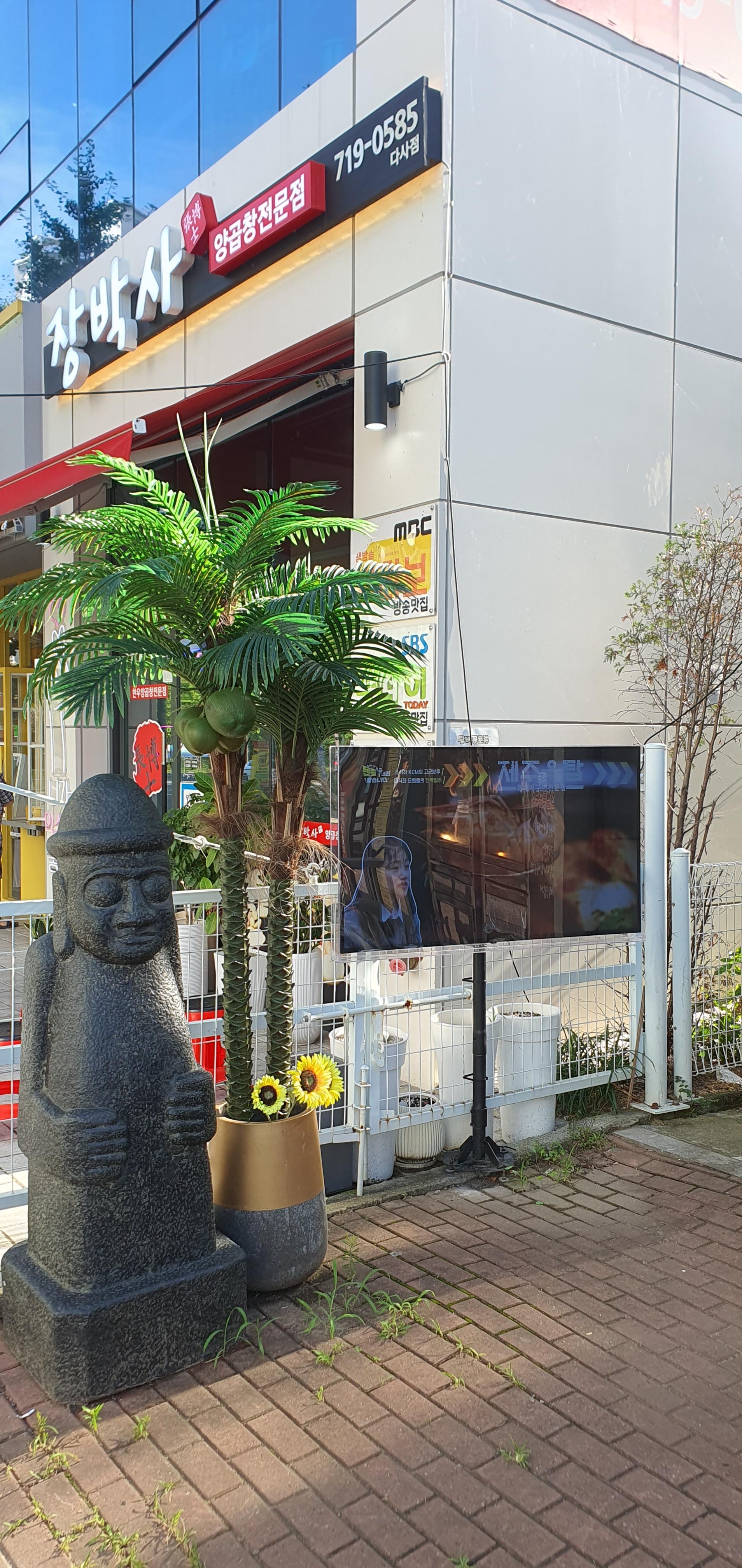 가게 외부에는 제주도 느낌을 물씬 풍기는 돌하르방과 야자수가 반겨주더군요. 정말 제주도에 온 듯한 기분이었어요!
