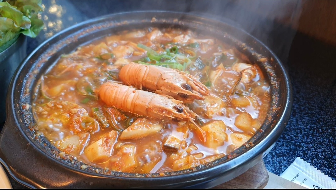 딱새우 된장찌개도 시켰는데, 비주얼이 정말 훌륭했답니다. 맛도 일품이었어요!