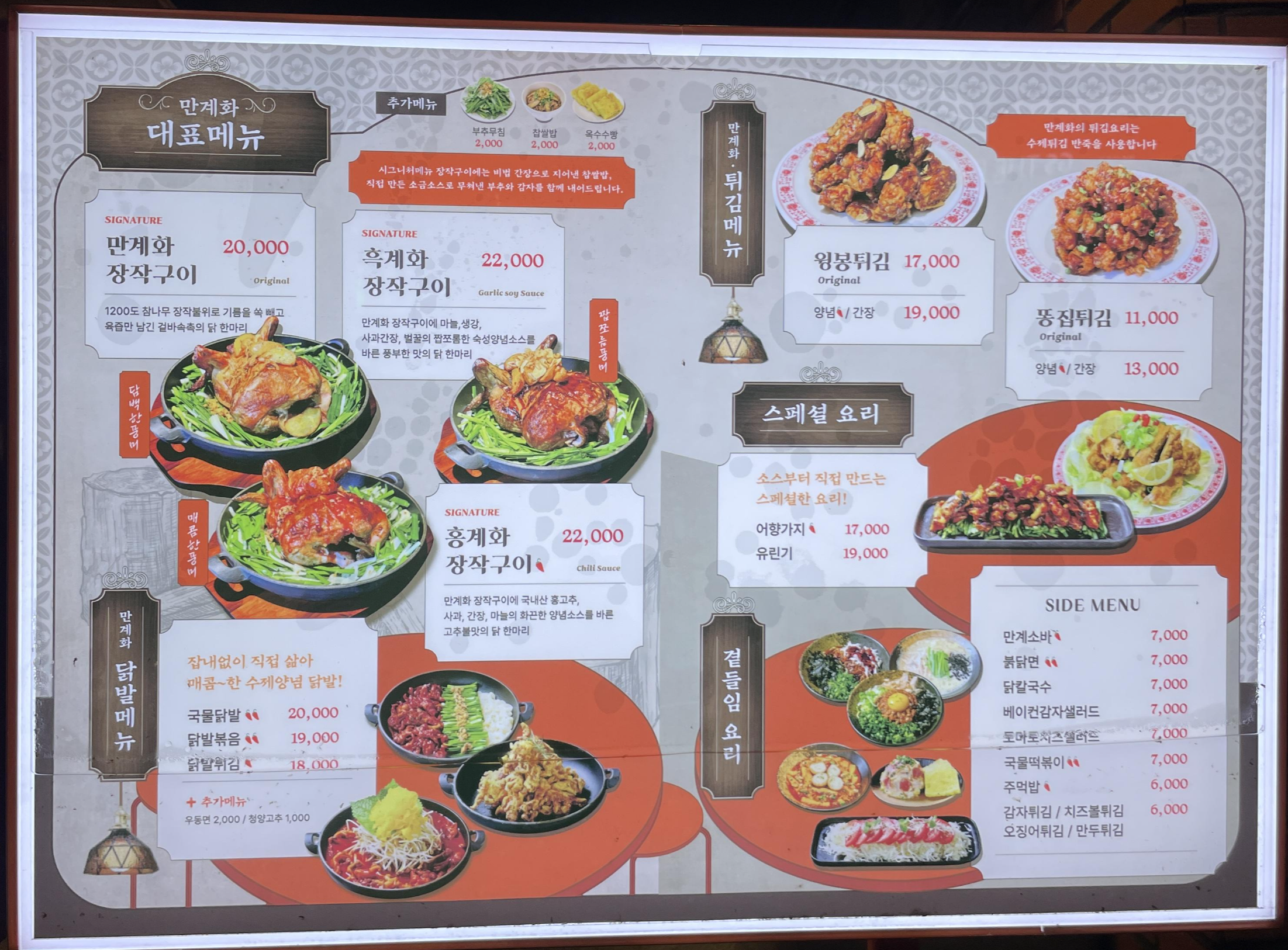 ● 만계화 상차림 및 메뉴