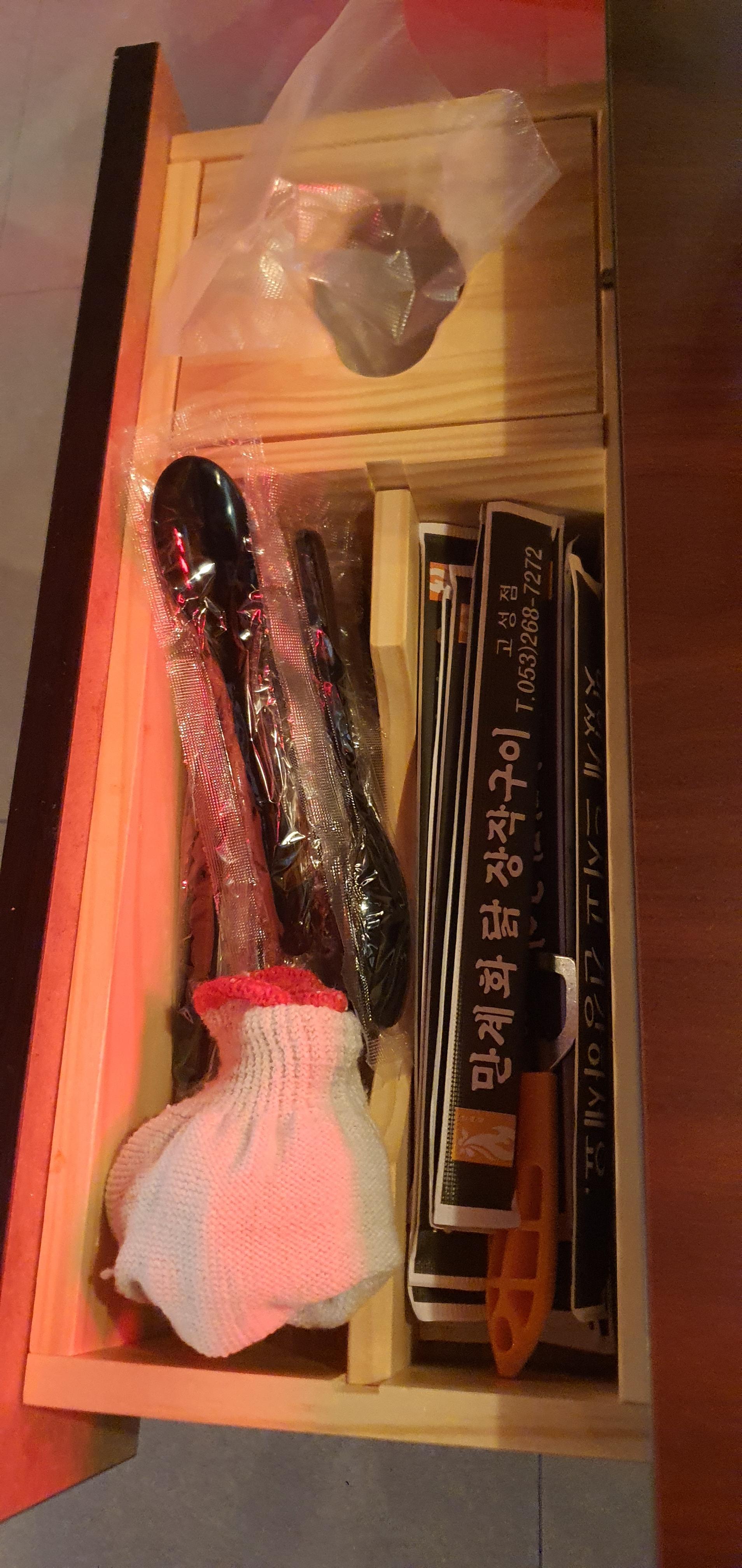특히, 수저통에 목장갑이 준비되어 있어, 뜨거운 닭을 해체할 때 유용했습니다. 이런 작은 디테일이 정말 좋았어요!