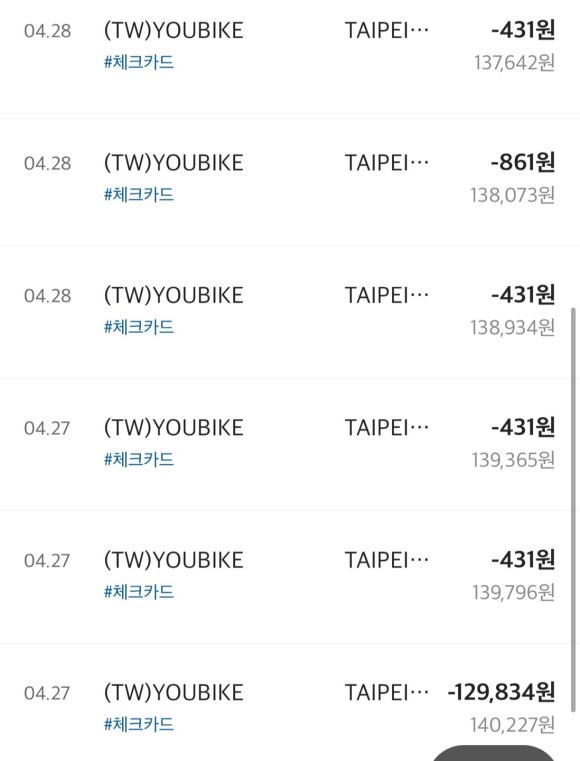 실제로 유바이크에서 빠져나간 돈이에요!