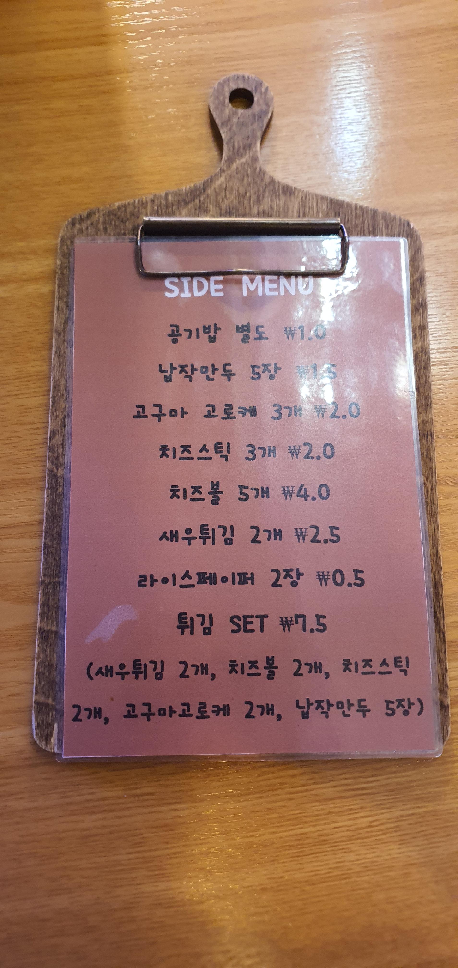 사이드 메뉴와 주류도 다양하게 있었어요!