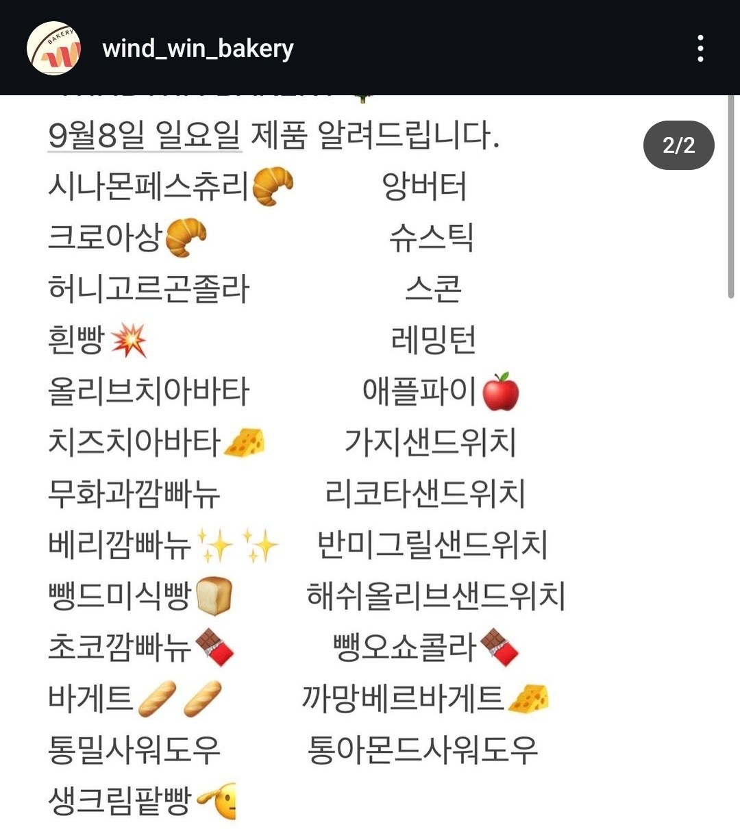 인스타 팔로우를 하시면 그날그날 빵들이 업데이트 되어있어 편리했어요 ㅎㅎ